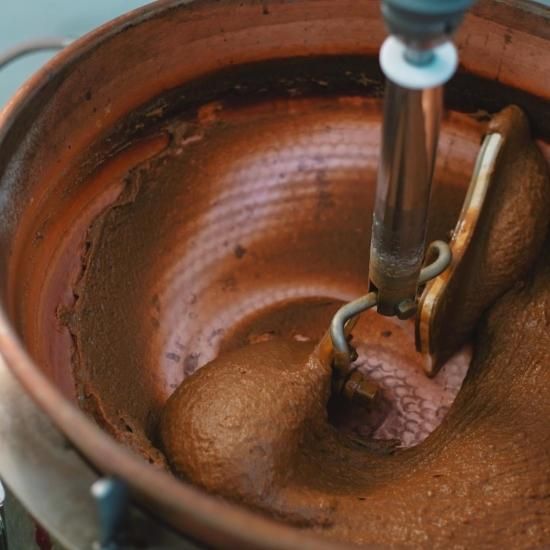 銅釜で6時間煮詰めることでホエイと生乳が茶色く色づき、キャラメルのような黒糖のうな滋養味が生まれます。